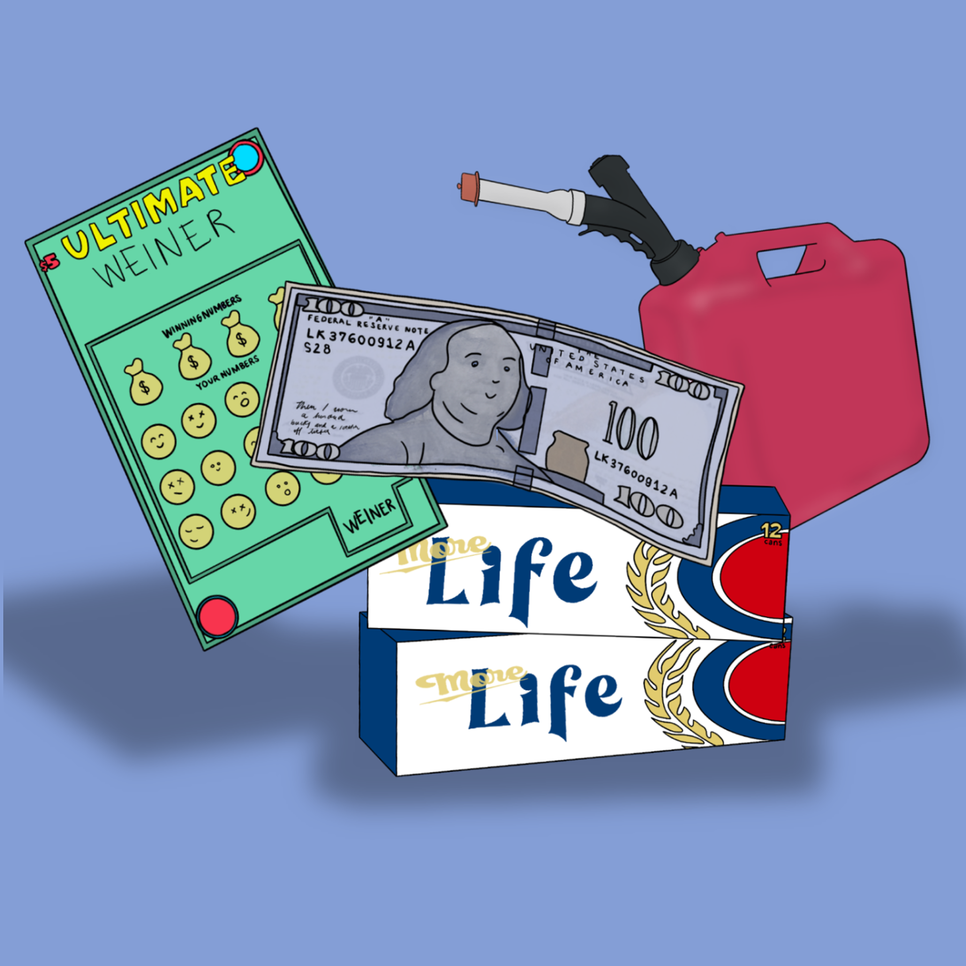 "Then I won a hundred bucks on a scratch-off ticket, I bought two 12-packs and a tank of gas with it."